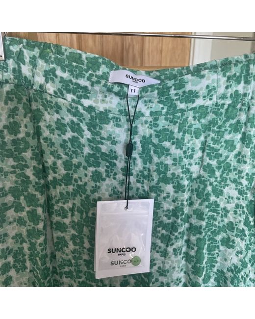 Suncoo Maxi Skirt. The flowing green fabric drapes beautifully, with a full wrap and frilled edge creating a chic and stylish look. Waterfall tiered at front. Perfect for any occasion, this midi-length skirt is designed with a size 10 regular fit for women. The skirt features a stylish design with a comfortable waistband elasticated at each side that sits perfectly on the hips. RRP £60. Selling for £35 with free P&P