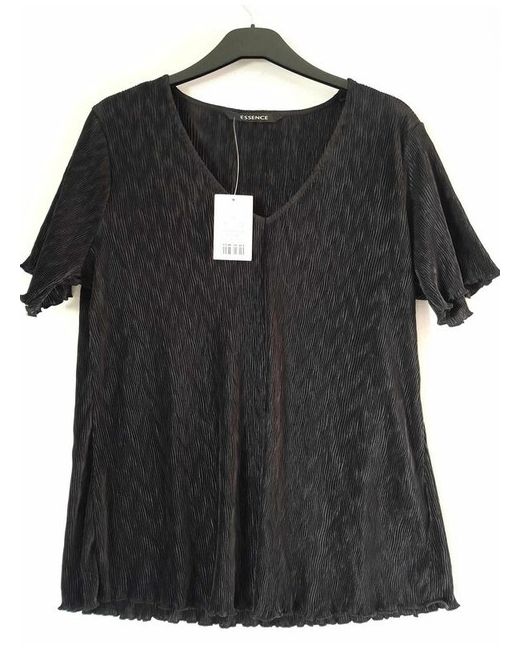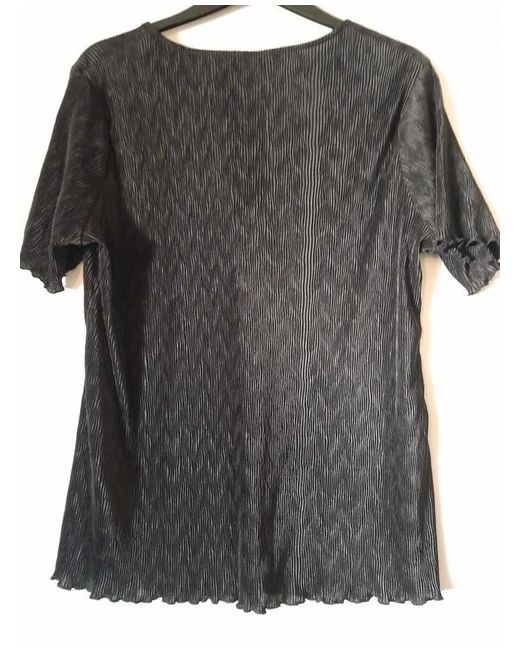 Black short sleeved slinky top. Plisse/crinkle material. Lettuce hem and sleeve edges.