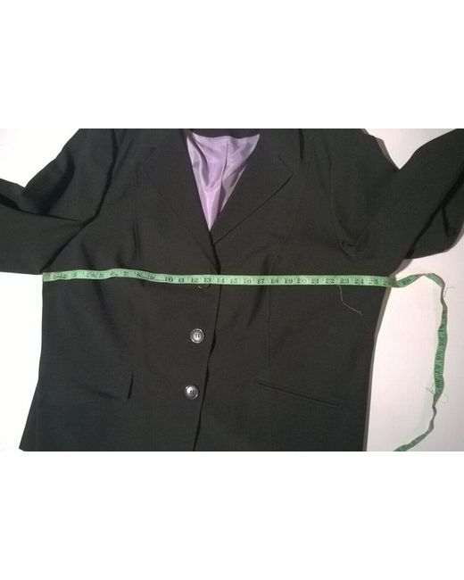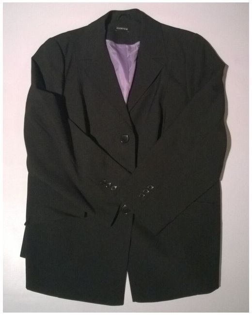 Ladies buttoned jacket by Evans / Essence. 26" from armpit to armpit. 27" sleeve. Material is 100% Polyester. 34" in length. Lining is 100% Polyester.