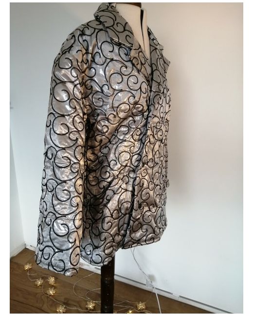 Designer Silver Jacket, very unusual, never worn. It is a silver colour with swirly embroidery detail and a clear pvc outer. Fully Lined and quilted layer. Armpit to armpit is21 inches. 28 inches long. See photos. It has 2 pockets and fastens with press studs. Having a clear out, see my other items. Thank you.