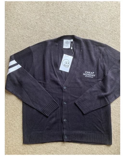 Cheap Monday Sample XL Size Black Button Front Cardigan with front Logo, logo buttons and striped sleeve. Pit to Pit is 26” inches laid flat A lovely looking Cardigan New with Tags. Any questions please feel free to ask. Thank you.
