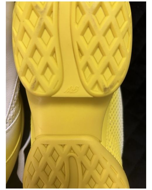 Elevate your sneaker game with these stylish Roger Vivier trainers. The yellow-white colourway adds a pop of brightness to any outfit, while the comfortable design makes them perfect for all-day wear. These trainers are a must-have for any fashion-forward woman looking to add a touch of sophistication to her shoe collection. Crafted with the utmost attention to detail, these trainers feature a sleek sneaker-style design that is both trendy and timeless. The white leather upper is accented with Roger Vivier's signature branding, adding a touch of luxury to these trainers. Perfect for any occasion, these trainers are sure to become a staple in your shoe collection.
