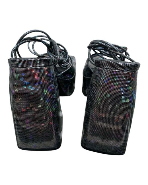 BEBO Iridescent Black Chunky Platform Heels Size: UK 5 Features: Black base with multicoloured iridescent sparkle overlay Thick lace-up detail with metallic cord ties Square open toe and platform sole for comfort and height Statement block heel with a bold, sculptural shape Perfect for clubbing, parties, or a head-turning festival look Never worn - no original box #holographicshoes #ravefashion #altgirlstyle #statementheels #clubwear