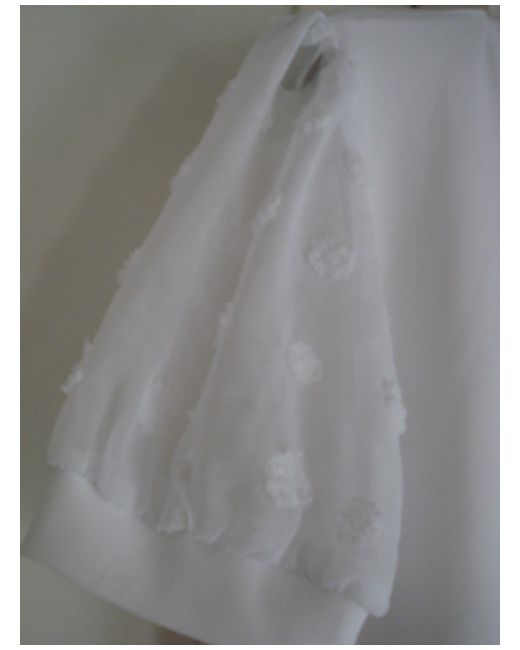 Pretty Blouse - Slight Puff Sleeve. WHITE SHORT SLEEVE BLOUSE - SMALL - NWT. 80% Rayon - 15% Polyester and 5% Spandex.