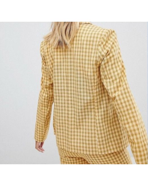 Checked/plaid yellow blazer, never been worn and has only been tried on once. Size small, which would fit sizes ranging from 6,8,10.