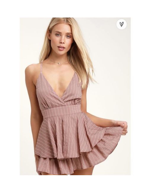 Lulus Ruffle And Flow Mauve Striped Backless Romper Size XS (Not Sold Anymore). Original price - $80 with customs