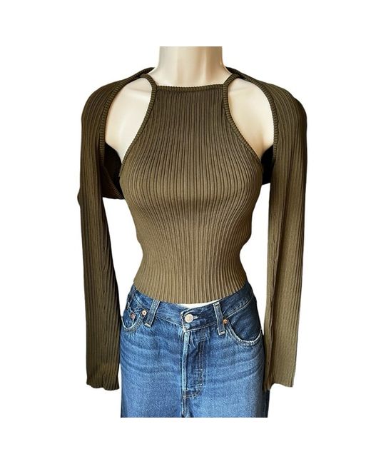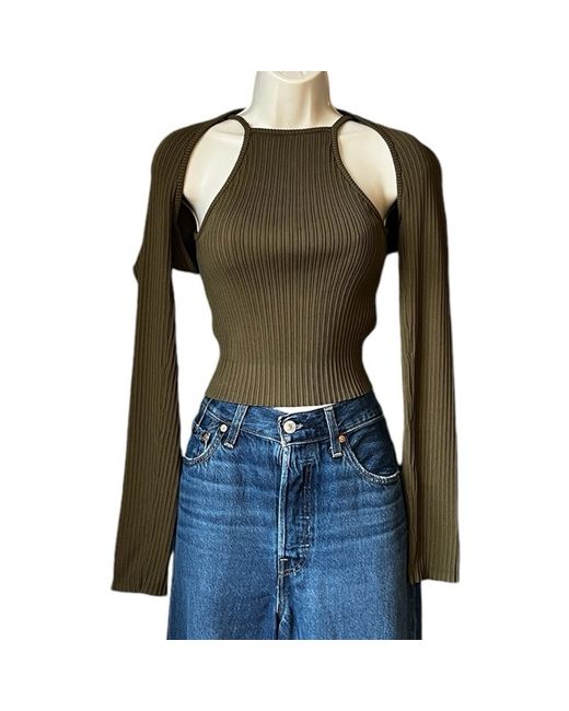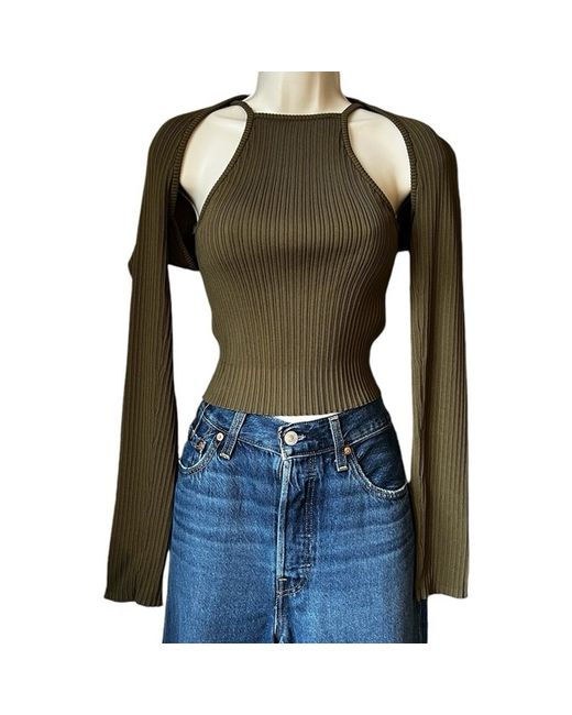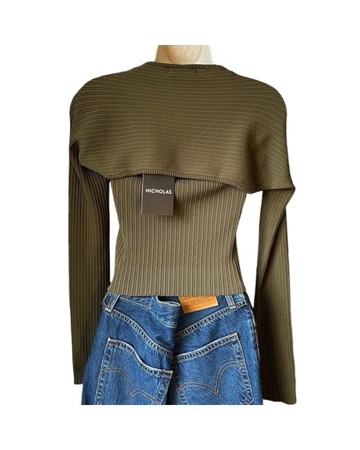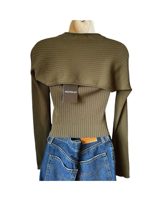 Occasions: casual, glam, chic, basic, party. Nicholas The Label. Khaki green. Top / tank. Lightweight knit.