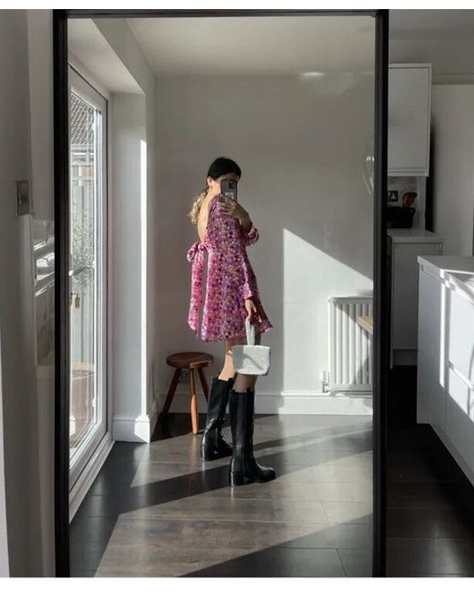 olivia rubin dress. Brand new with tags sold out everywhere RRP £350.00 Size UK 6 Olivia Rubin pink satin dress Multicoloured geometric print, v-neck, balloon sleeves, button-fastening cuffs, panelled, tie fastening straps at low back, fully lined Concealed zip fastening at back 65% rayon, 35% silk Dry clean Length shoulder to hem: 31.5 inches/ 80cm Midweight Loose fit, slim across the bust