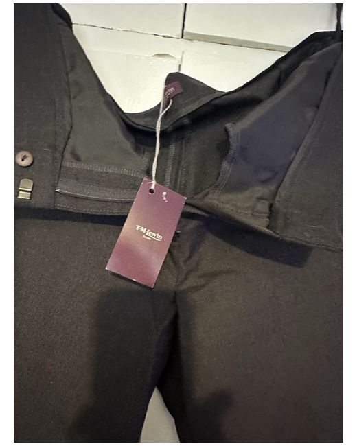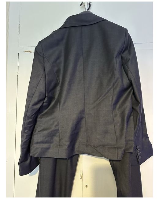 Grey TM lewin female trouser suit One button fastening Trousers will need hemming Stored in suit cover 95% wool and 5% cashmere Dry clean only
