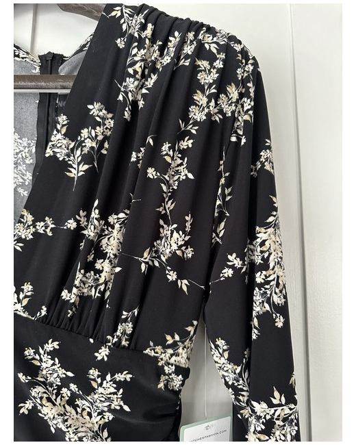 Norma Kamali black jumpsuit with cream/beige floral design throughout. Jersey material and very comfortable yet flattering to wear. Ruched middle area on front and back. Deep v-neck with gathered detailing under busy. Shoulder pads for structured look. Concealed zip fastening at the back. 95% polyester 5% spandex Brand new with tag. Dispatched by Royal Mail 1st Class or 2nd Class.