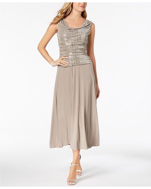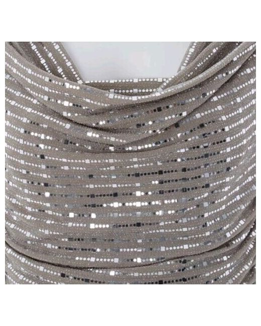 This elegant maxi dress features a sleeveless design, along with a ruched knit top sporting striking sequin accents. Dress Bottom: 95% Polyester, 5% Spandex.