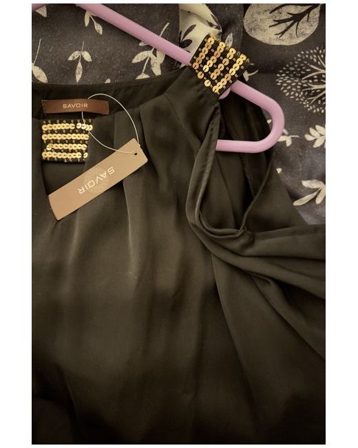 Add a touch of glamour to your wardrobe with this stunning cold-shoulder top from Savoir. The black blouse features intricate sequin accents, adding a touch of sparkle to any outfit. Features a loose elastic fitting around the waist. Perfect for women who want to make a statement, this top is a must-have for any fashion-conscious wardrobe. The cool sheer fabric is Ideal Summer nights and for pairing with a skirt or dress trousers, this blouse is sure to turn heads. If postage is less than expected I will refund the difference?