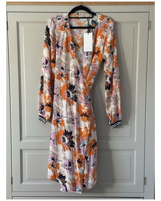 This multicoloured wrap dress from Kaffe in size 10 features a V-neckline and long sleeves, making it suitable for casual, workwear, and business occasions. The knee-length dress is made of viscose material, perfect for the summer and spring seasons. With its regular fit and stylish wrap design, this dress is a versatile and fashionable choice for women looking for a chic and comfortable option for various settings. 100% Viscose