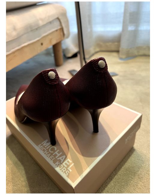 Color: Bordeaux. Perfect for any occasion, order now and step out in style! Material: Embossed Leather. Model: Flex Mid-Heel Pump.