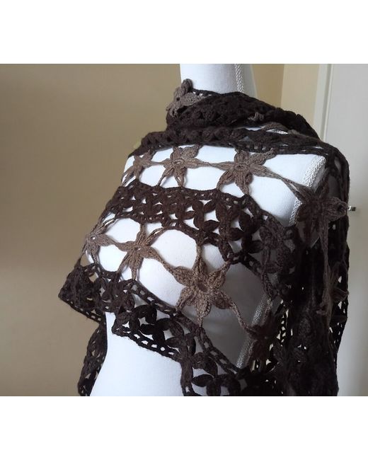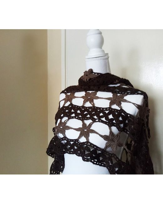 Women's Brown Alize crochet rectangular wrap colors modern shawl with twist tassels