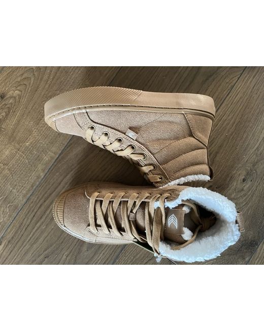 New with box. Crafted with an eye for both style and comfort, these Cariuma trainers embody casual sophistication. The all camel suede model, a part of the oca high product line, features a versatile brown shade that seamlessly transitions from daytime wear to evening outings. The upper material is made from premium vegan suede, offering a cruelty-free option for the modern woman. The shoes are a UK size 5.5, equivalent to a US size 7.5, and cater specifically to the women's department. With a design that echoes the classic sneaker silhouette, these trainers are an effortless addition to any footwear collection, promising durability and a timeless aesthetic.