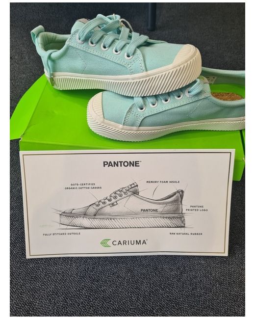 Organic ! Step into style with these stunning eggshell blue trainers from Cariuma. Designed with comfort and fashion in mind, these sneakers are perfect for any occasion. The UK size 2.5 is ideal for women who want a snug fit and impeccable style.These trainers are the perfect addition to any wardrobe, and their blue hue is a great way to add a pop of colour to any outfit. Whether you're hitting the gym or running errands, these sneakers will keep you looking stylish and feeling comfortable all day long. Don't miss out on this must-have pair of trainers!