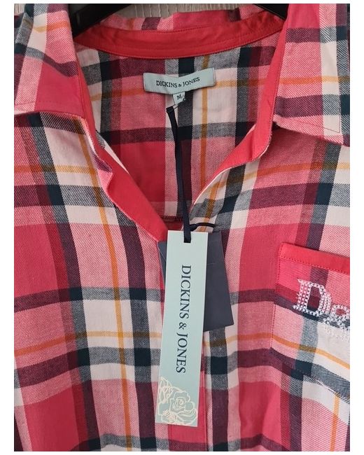 Dickins & jones Womens Check Cotton Basic Button-Up Long Size M Collared New Pink