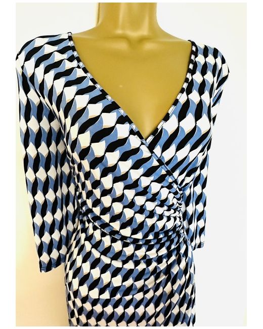 LAUNDRY by Shelli Segal SMALL Blue White Geometric Wrap Dress BNWT!. Beautiful wrap dress Geometric pattern Brand new with tags! And do take a look at my other lovely dresses I have a huge collection… x