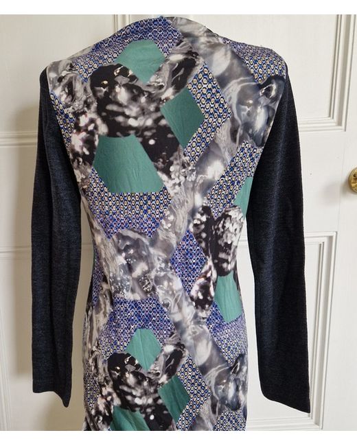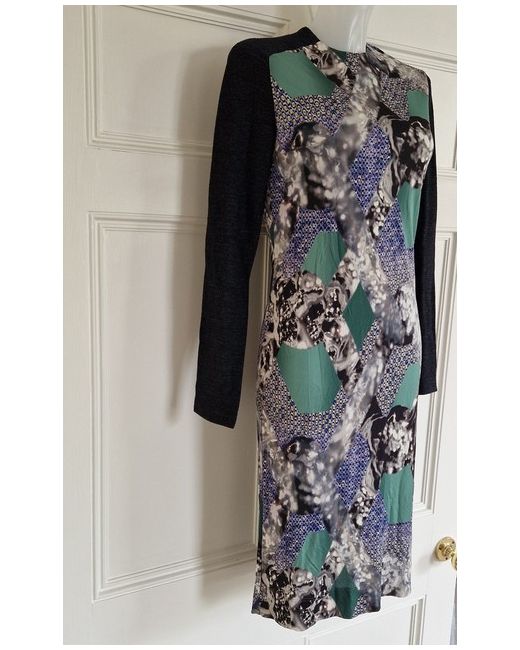 Peter Pilotto multicoloured arrow print silk jersey dress with wool blend knitted sleeves. Concealed zipper across shoulder. Length 109 cm Bust 96 cm.