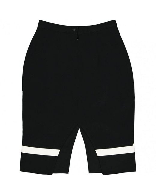 Black and white crepe. 63% viscose, 34% acetate, 3% elastane; lining: 65% acetate, 35% polyester. Button and concealed zip fastening at back.