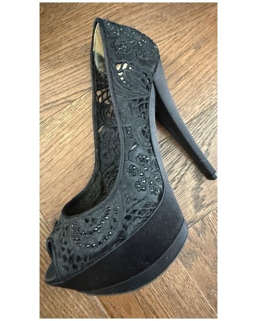 Casadei open toe sandal in black lace with black sequins Size 7 (US) 37 (EU) 4 (UK) Heel 11.5 cm