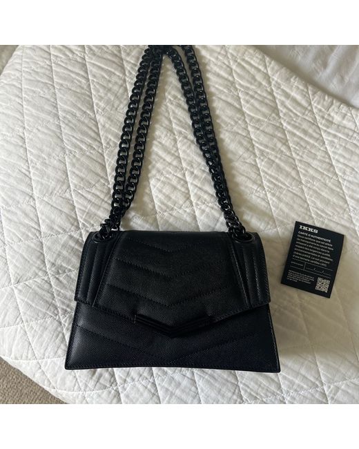 This IKKS shoulder bag is a stylish addition to any woman's wardrobe. Made in same factory as top Italian brands. Black with metal chair strap which can be made as crossbody or shoulder length. 9inch by 7 Inch.