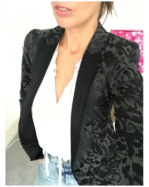 IKKS Black Blazer - size XXS. Spotty design. Satin lapels. Very small size: US 0, UK 4 or EU 34. Dispatched with eBay delivery – Packlink 1 day.