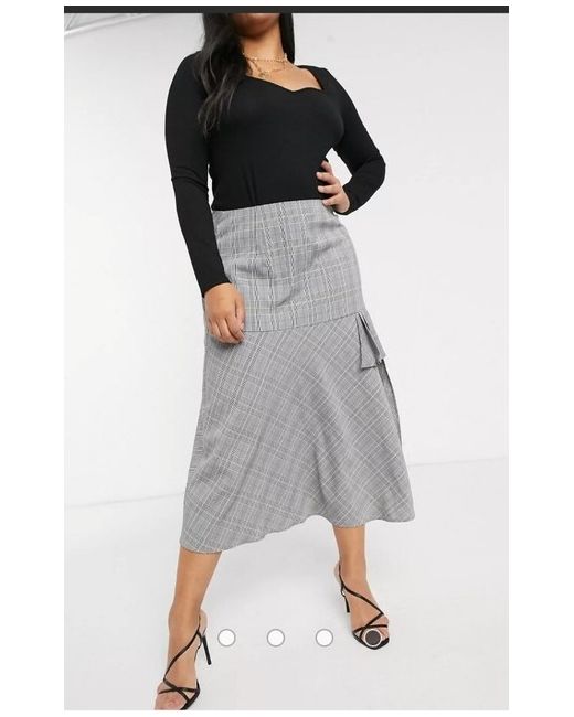 Lost Ink Plus midi skirt in check with side split(BLK). SIZE 26.