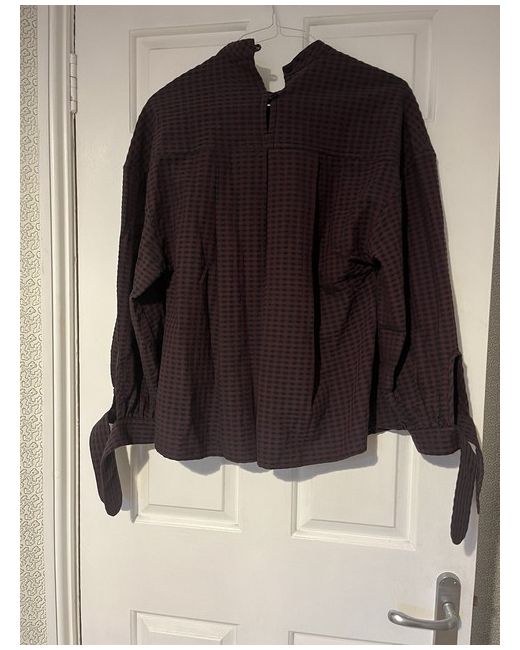 Super Soft Cotton Stone Black Plaid Boxy Ruffle Neck Blouse S RRP 175