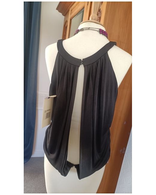 Cordelia Dark Grey Ruffles Zip Front Sleeveless Top M UK8-10 NWT