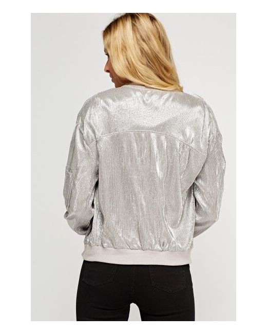 Gray Bomber Pleated Metalic Zip Up Jacket Grey S