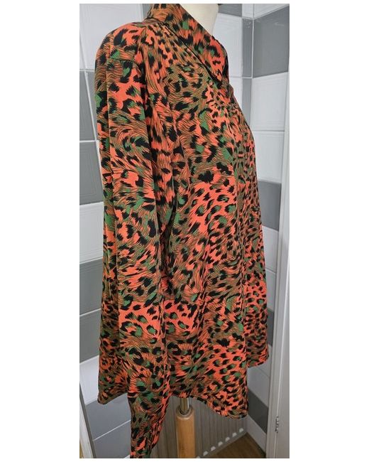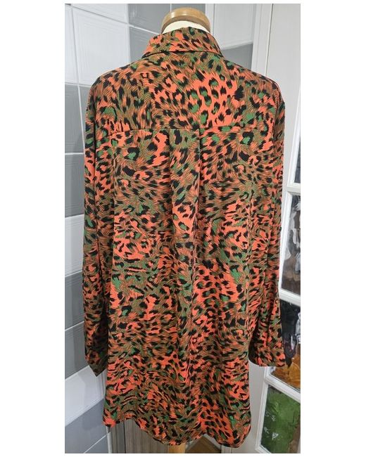 Women's Orange JS Leopard Print Roll Tab Oversized Button Up Blouse Uk 16-18