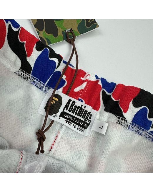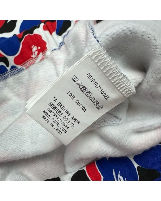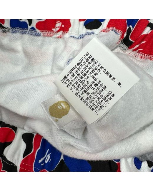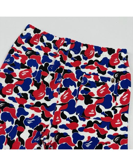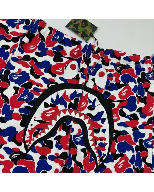 BAPE A bathing ape “SOLD OUT RRP £269” absolutely beautiful red and blue camo shark track pants with drawstring waist new with tags, unable to purchase now ! Please check measurements below for true fit: Size: L/12 Length: 29.5” Waist: 31-32” #camo #streetwear #luxury #limited #contemporary