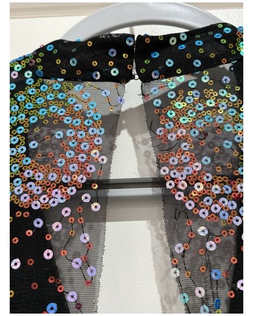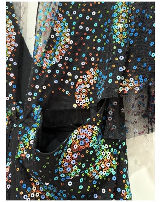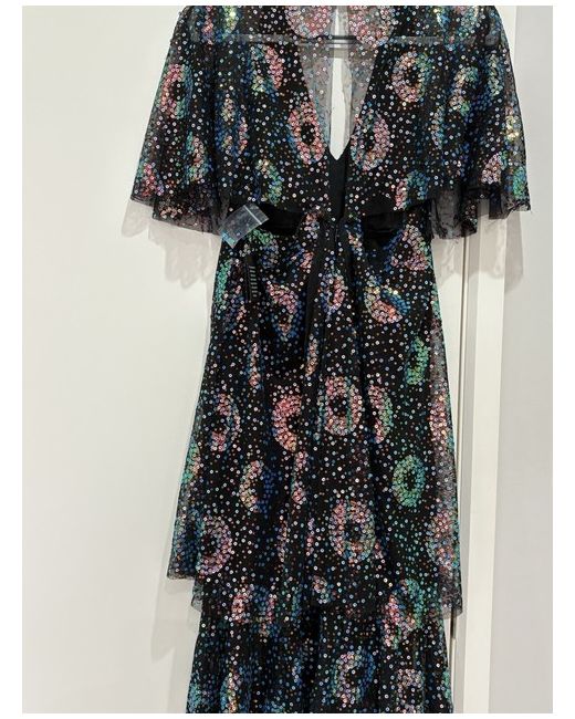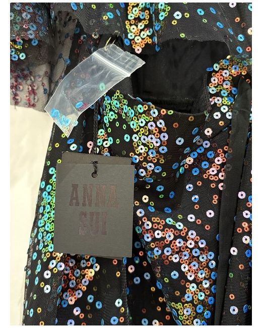 ANNA SUI I had purchased 2 sizes but forgot to return this one in time frame. Unworn but due to fabric and unfinished edges listed as imperfections but just the nature of the fabric Tiered sequined tulle dress US 8 UK 12 I think it runs a little large Cape flutter sleeves but open at back please check pictures Ties at back Concealed hook and zip fastening at back Lightweight fabric