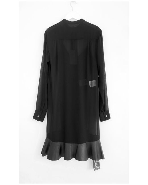 Super cool archival McQ Alexander McQueen dress - from the Pre-Fall 2014 collection. Designed to look like separates, it has a soft semi sheer polyester shirt style top with soft black lamb leather skater skirt style hem.