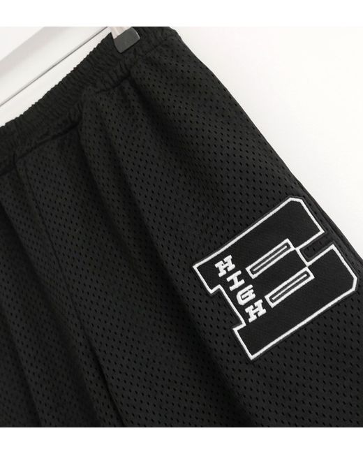 Made from black punched polyester with inner shorts, they have large patch to one leg and decorative label detailing to back. Have elasticated wait and hip pocket. Size XS and will fit larger.