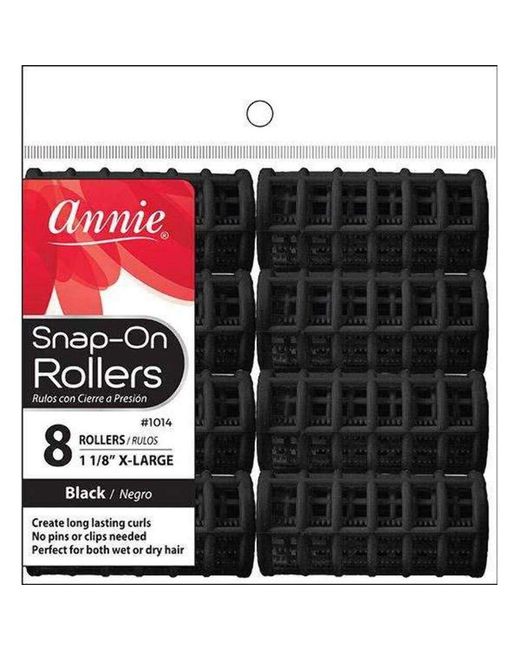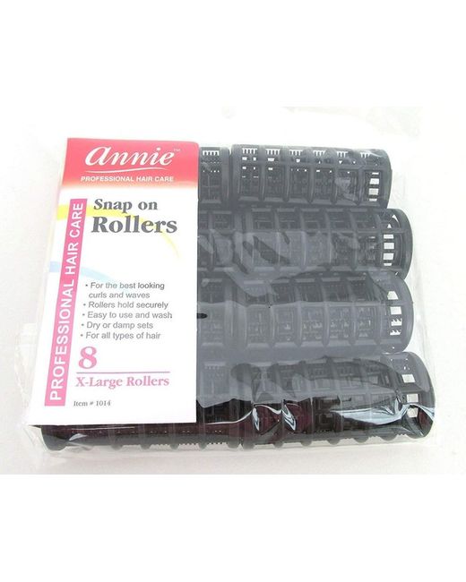 Annie Snap-On Rollers Size X-Large 8 Count Black 1014 Annie Snap-On Rollers Size X-Large 8 Count Black 1014 The Annie Snap-On Rollers 1014 in Size X-Large are ideal for creating smooth, voluminous curls and waves effortlessly.