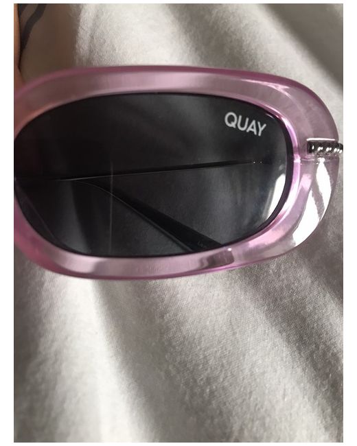 New with tags but without original case. Elevate your style with these stunning Quay Women's Sunglasses in Lilac/Light Purple. Designed with a sleek black frame, these oval-shaped sunglasses are the perfect addition to any outfit. The lilac-coloured lenses provide excellent protection from the sun's harmful rays while adding a pop of colour to your look. Crafted with quality materials and attention to detail, these sunglasses are perfect for any woman who wants to make a statement. The Quay X Kylie Jenner model is a must-have for anyone who wants to channel their inner Kylie while keeping their style fresh. So, whether you're heading to the beach or running errands, these sunglasses are the perfect accessory to complete any look.