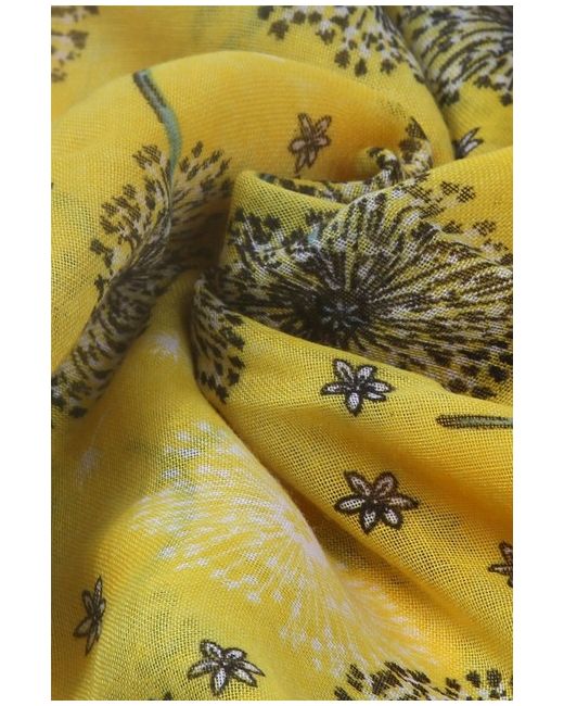 The scarf features a lively dandelion motif, which adds a touch of whimsy to any outfit. Whether draped over the shoulders or tied neatly around the neck, this scarf is sure to make a lovely addition to your wardrobe.