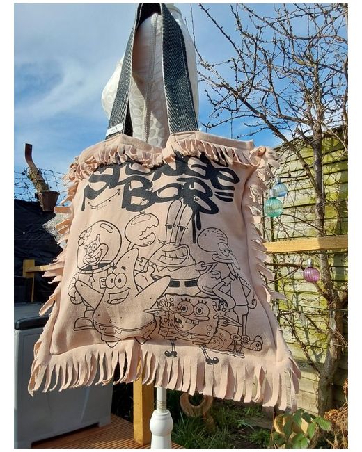 Sponge Bob Square Pants Iconic Cartoon Tote Unique Fringe Fun One Off Quirky Bag
