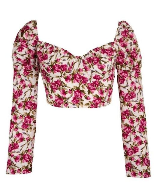 We love this cute new crop top featuring a sweetheart neckline, long sleeves and floral print fabric.