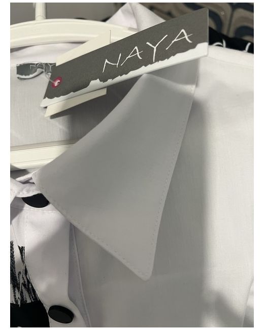 Absolutely Stunning crisp white blouse with the black print design from Irish designer brand Naya in a size 5, the front finished with black stud buttons, black print to the right panel, one black/ one white front pockets. Sleeves are adjustable can be worn up / down, with taps , black loops and stud buttons. Stunning piece, received as a gift unfortunately it donāt fit, extremely eye catching beautiful blouse. New with the tags attached. A real statement piece. Size 20 is on the label. Arm pit to Arm pit measures. 25 inches. FREE UK POST. VIA ROYAL MAIL .