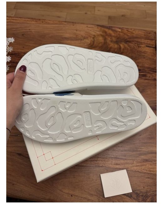 Alexander McQueen “GRAFFITI” White/BlueLogo Pool Slide Sandals Size 43.5 EU