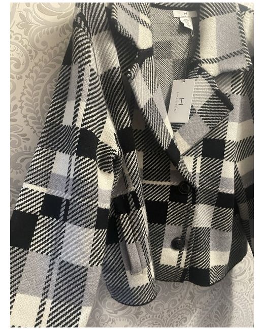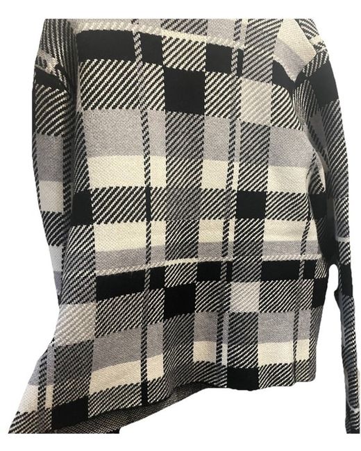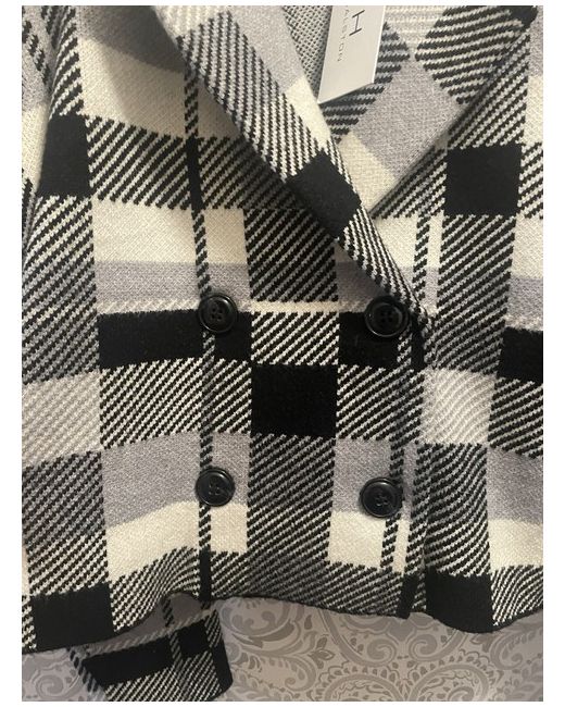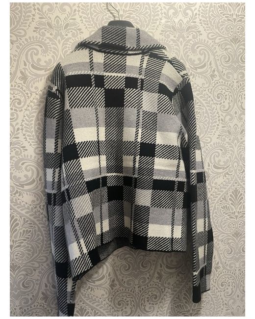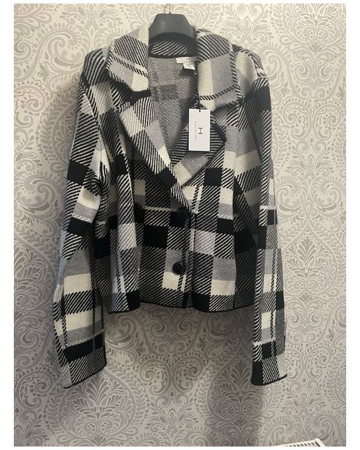 This woman's cardigan/jacket is a stylish choice for various occasions, from workwear to casual outings. It features a check pattern in black with a double-breasted front and a collared neckline, giving it a sophisticated look.