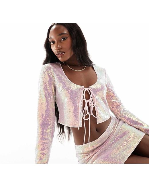Sequin pink top crop top perfect for the festive season size 12/14 but comes quiet small and can fit 8/10