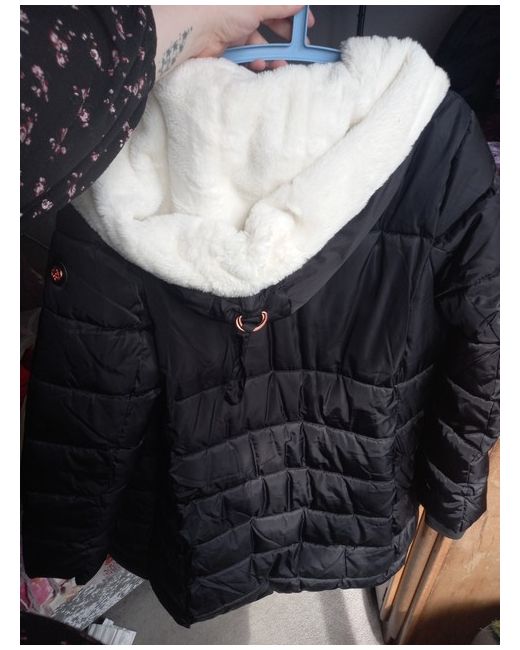 Beautiful figuring hugging coat White soft hood Just over the knee Bought for 165