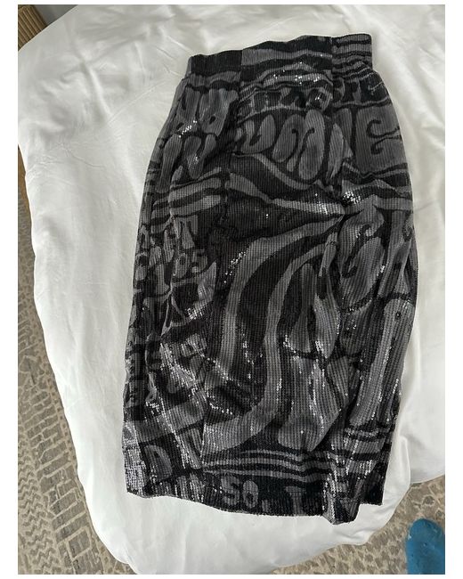Typical Rundholz stylish banana shaped skirt. Fully cotton lined. Stretch pull on design in grey and black sequin fabric. Size small but would fit up to a 14.