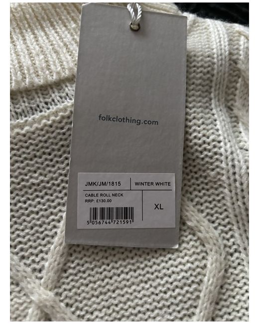 BNWT FOLK designer cable knit roll neck jumper , size xl RRP £130 , colour winter white ,85% acrylic 15%wool ,machine washable 30 degrees really great quality , please no silly offers , see photos