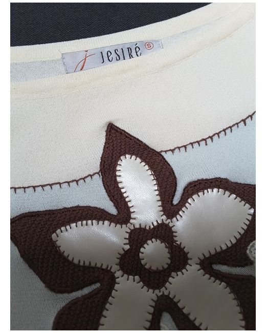 NEW JESIRE BONE SLEEVELESS TOP WITH 60's STYLE PATCHWORK FLOWERS. 42 cm from armpit to armpit. 53 cm long. Beautiful quality top with very well applied flowers in brown and light blue.